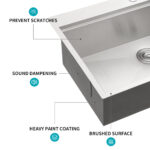 [Coating and Silencer Pad] There is a thick coating on the outside of the sink to prevent condensation caused by weather changes. In addition, the 3mm thick rubber silencer pad can greatly reduce the noise from the faucet and give you a quieter cooking environment.
