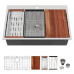 [Included in the Package]Comes with this kitchen sink: 1 x 304 stainless steel dish grid, 1 x drain assembly, 1 x drying rack,1 x cutting board,1 x colander,1 x installation clips, 1 x cutout template and installation Guide.