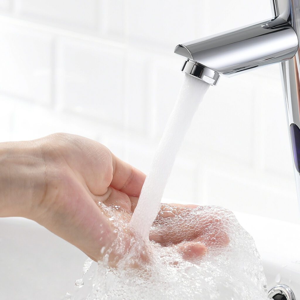The built-in aerator mixes air with water to create a soft, splash-free stream, reducing water waste while keeping your countertop dry. The auto-shutoff feature also stops flow immediately when hands are removed.