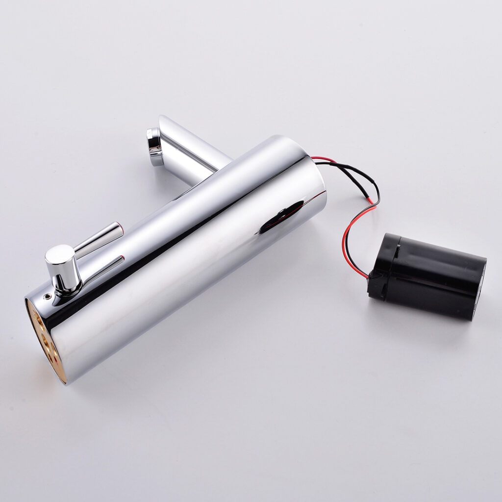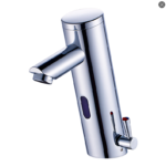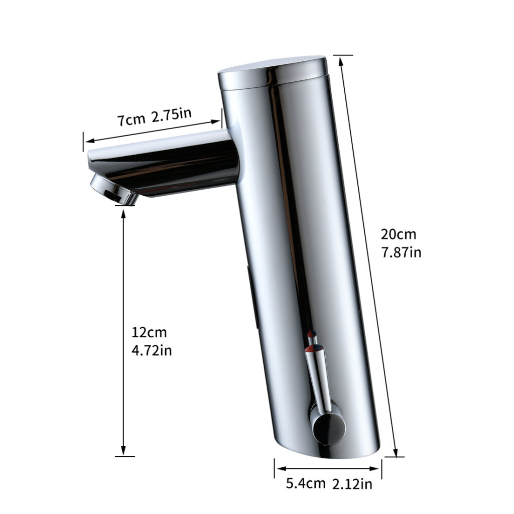 This faucet combines infrared sensor activation for hands-free, hygienic use with a side-mounted manual lever to pre-set water temperature – ideal for balancing convenience and precision in family bathrooms or commercial spaces.