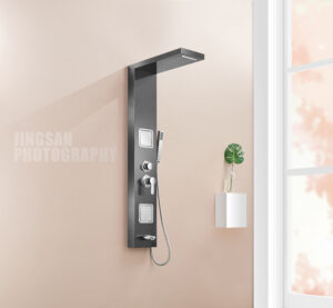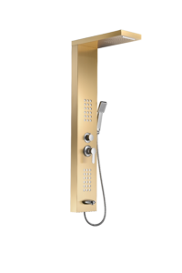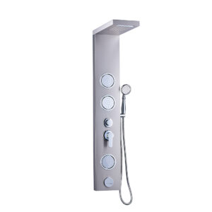 Brushed Nickel Stainless Steel Shower Panel with Rainfall Head, Body Jets & Handheld Shower ,Lower spouter– Spa-Like Bathroom Shower System