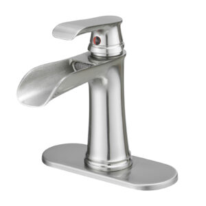 Sink Faucet With Deck Plate Waterfall Brushsed,Modern Vessel Sink Faucet - Single Handle Vessel Sink Tap with Pop-Up Drain, 5-Layer Finish