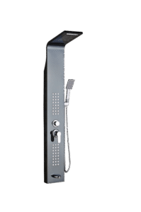 Black 304 Stainless Steel Shower Panel Tower System with Rainfall Head, Body Jets & Handheld Shower and lower spout
